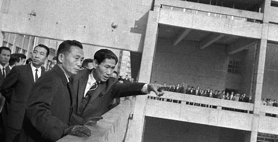 Sewoon Sangga was the architectural capstone for Park Chung-hee’s vision of state development in 1960s South Korea. A military officer who successfully led the 1961 coup d’etat, Park became president in 1963 and aggressively rallied and coerced the nation to a planned economy focused on rapid export-focused industrialization to propel economic growth. When Park blessed Sewoon Sangga in 1966, South Korea’s GDP per capita was a measly $134 – but Park was eager to stamp South Korea as an economy ready to accommodate westernized haute lifestyles for its own upper class and to signal to the world its arrival. Accordingly, Mayor Kim named the complex Sewoon Sangga (世運商街), the word Sewoon meaning “Channeling the world’s energy.”11