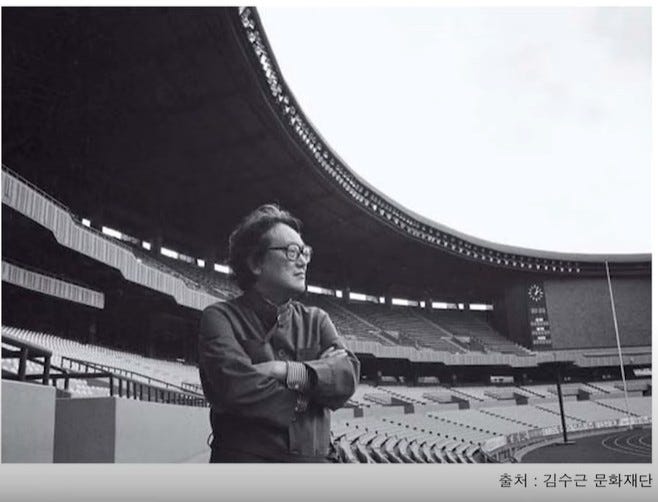 The architect for Sewoon Sangga was the young rising star Kim Swoo-geun, who was in his 30s when he was picked by Mayor Kim to design the complex. Heavily influenced by Le Corbusier, Kim sought to bring the Radiant City to Seoul.14 For Kim, the hallmark feature of the complex would be an aerial walkway on the third floor connecting the eight buildings together; this would provide a straight pedestrian path from Jongmyo Shrine to Namsan Mountain, away from cars and overlooking the city. But such a walkway would not be built for decades. Kim, already considered one of Korea’s most influential architects, died in 1986, at the age of 55, without seeing it completed.