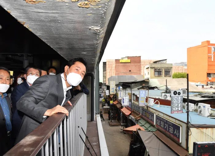 This period turned out be a sweet but short honeymoon due to two catastrophic events in 2020: first, the COVID pandemic, and second, the suicide of Mayor Park a day after he was publicly accused of sexually harassing his female staff. In 2021, Oh was elected back as mayor for his third term. Over the next four years, Oh carefully laid his pieces to finally demolish redevelop Sewoon Sangga, a place he visited in his current term which made him “want to vomit blood” in how little it has changed.22 His plan would ultimately lead to a showdown that recently grabbed the nation’s hearts and minds on what Seoul’s future should look like.